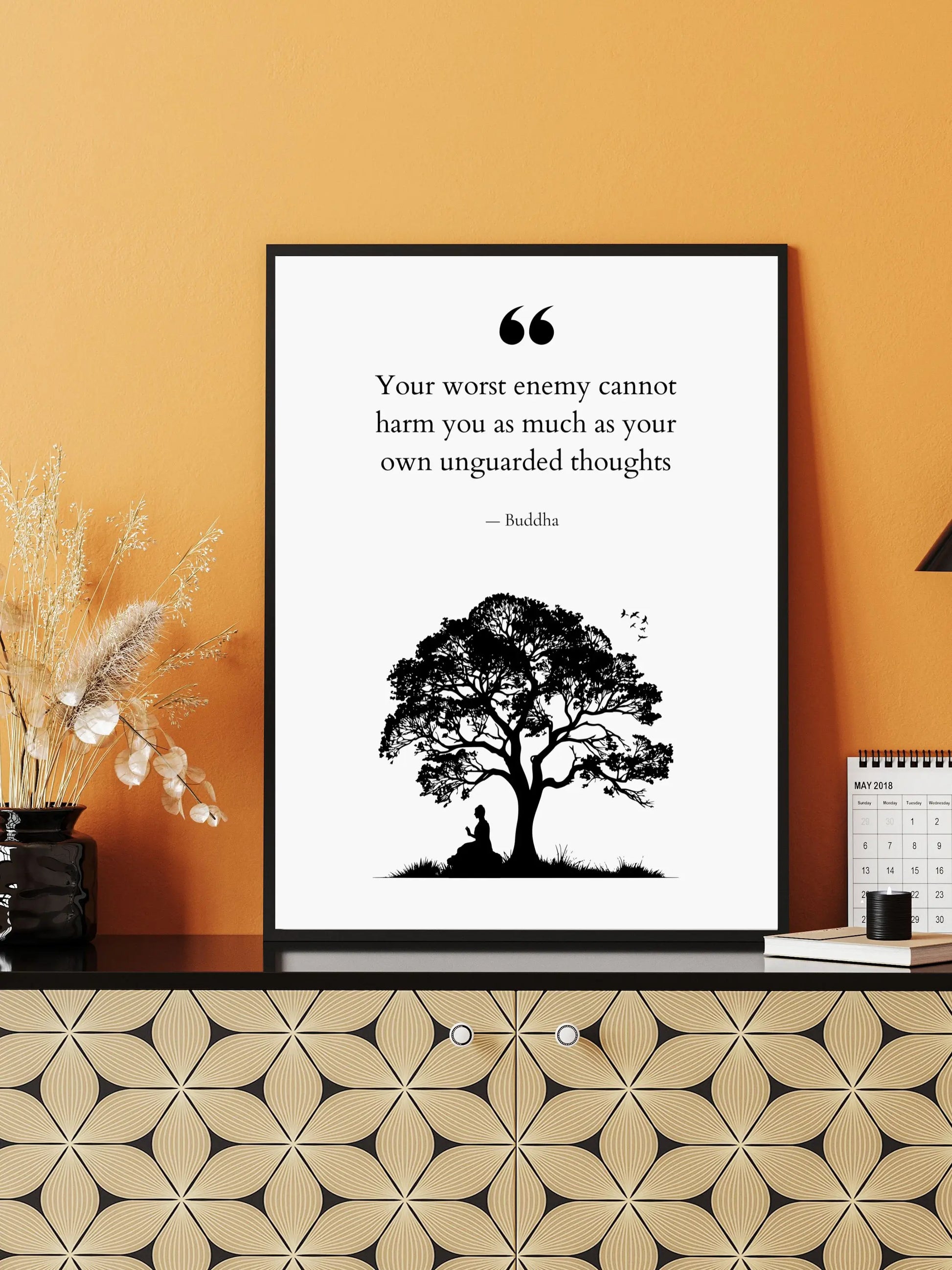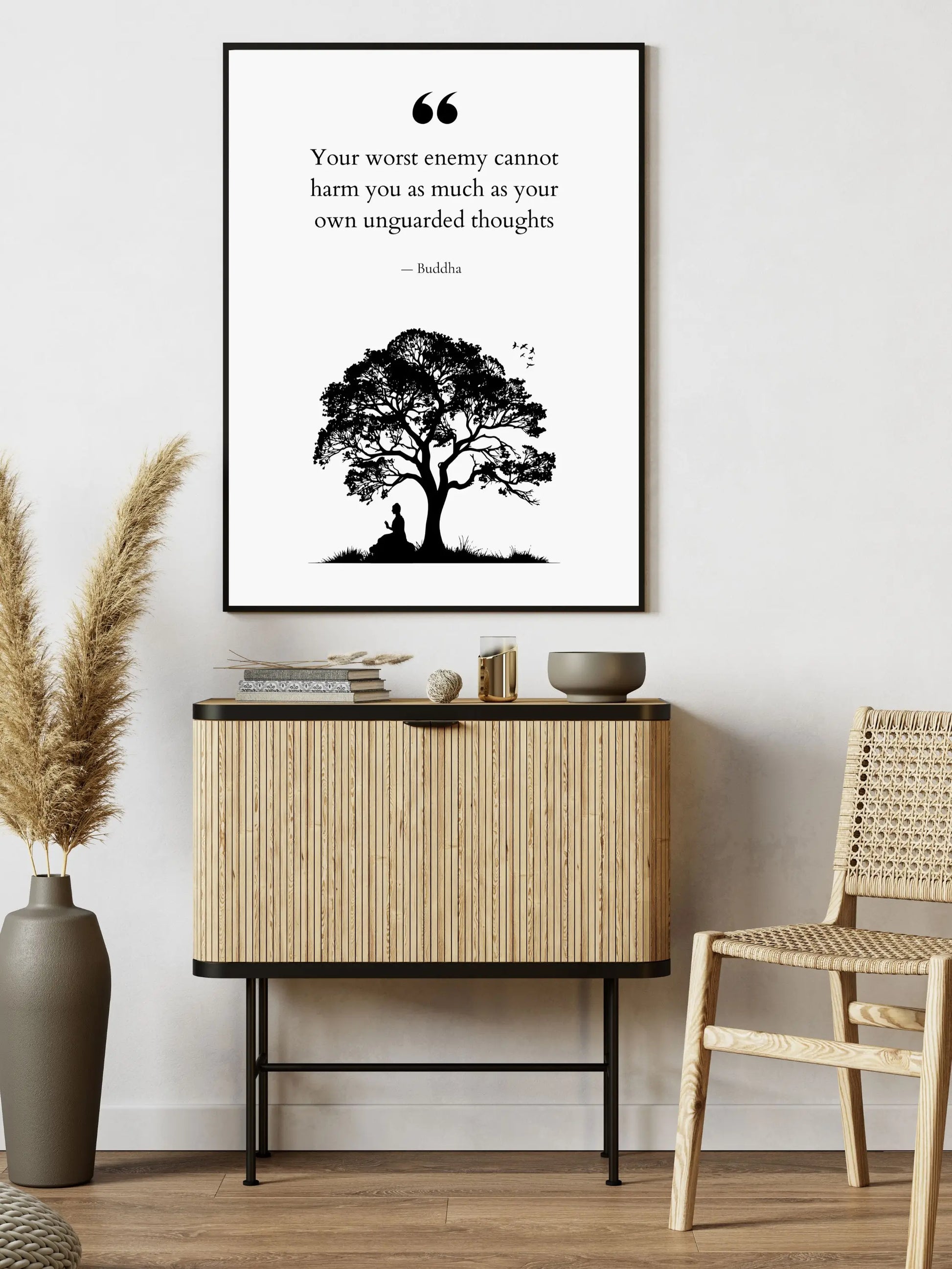 Transform your home or sacred space into a sanctuary of mindfulness and clarity with this premium Buddha quote print: "Your worst enemy cannot harm you as much as your own unguarded thoughts."