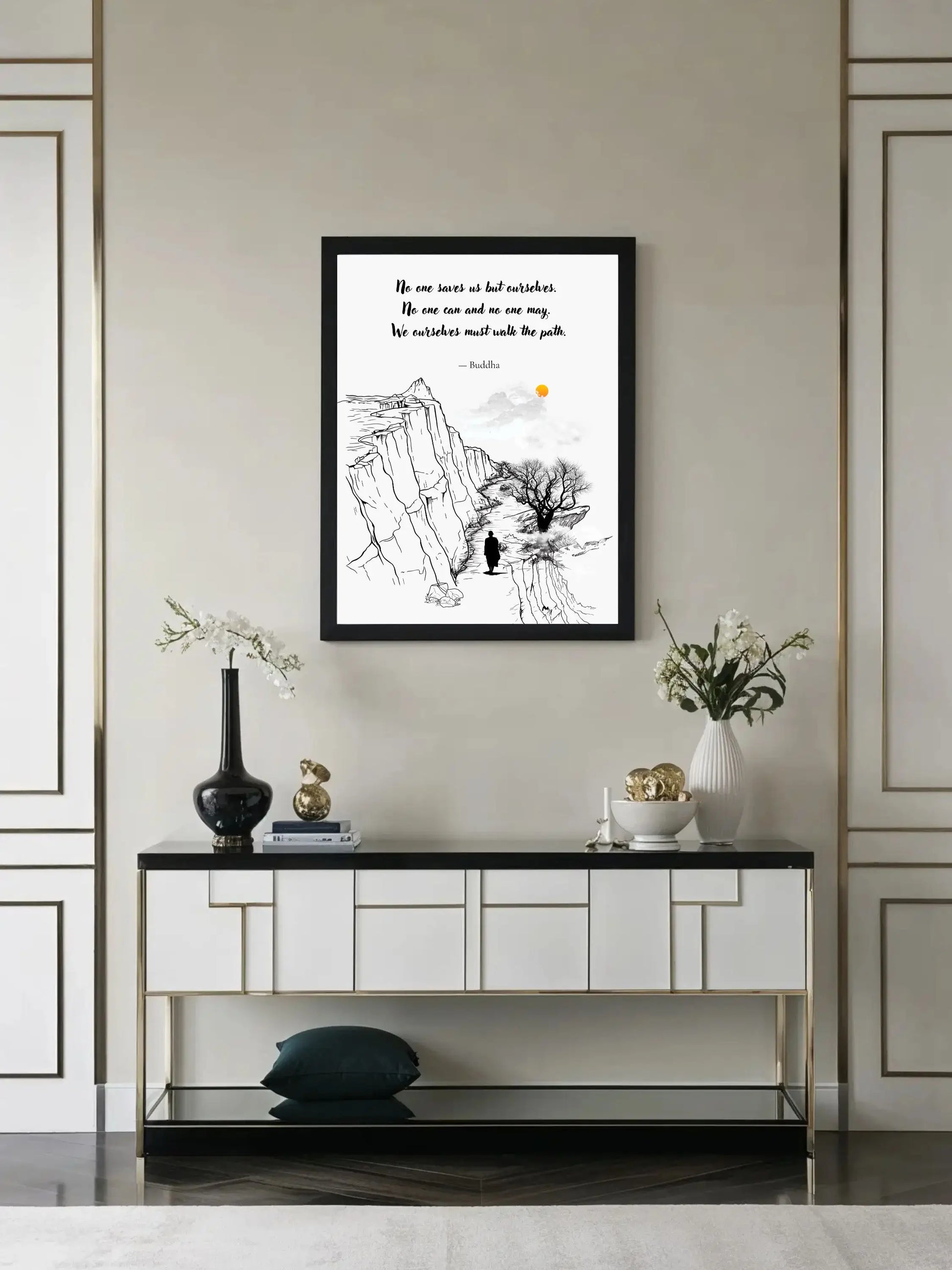 Whether placed in a quiet corner for introspection or as the centerpiece of your living room, this Buddha quote print invites wisdom into your daily life, inspiring you to walk your path with strength, clarity, and peace.