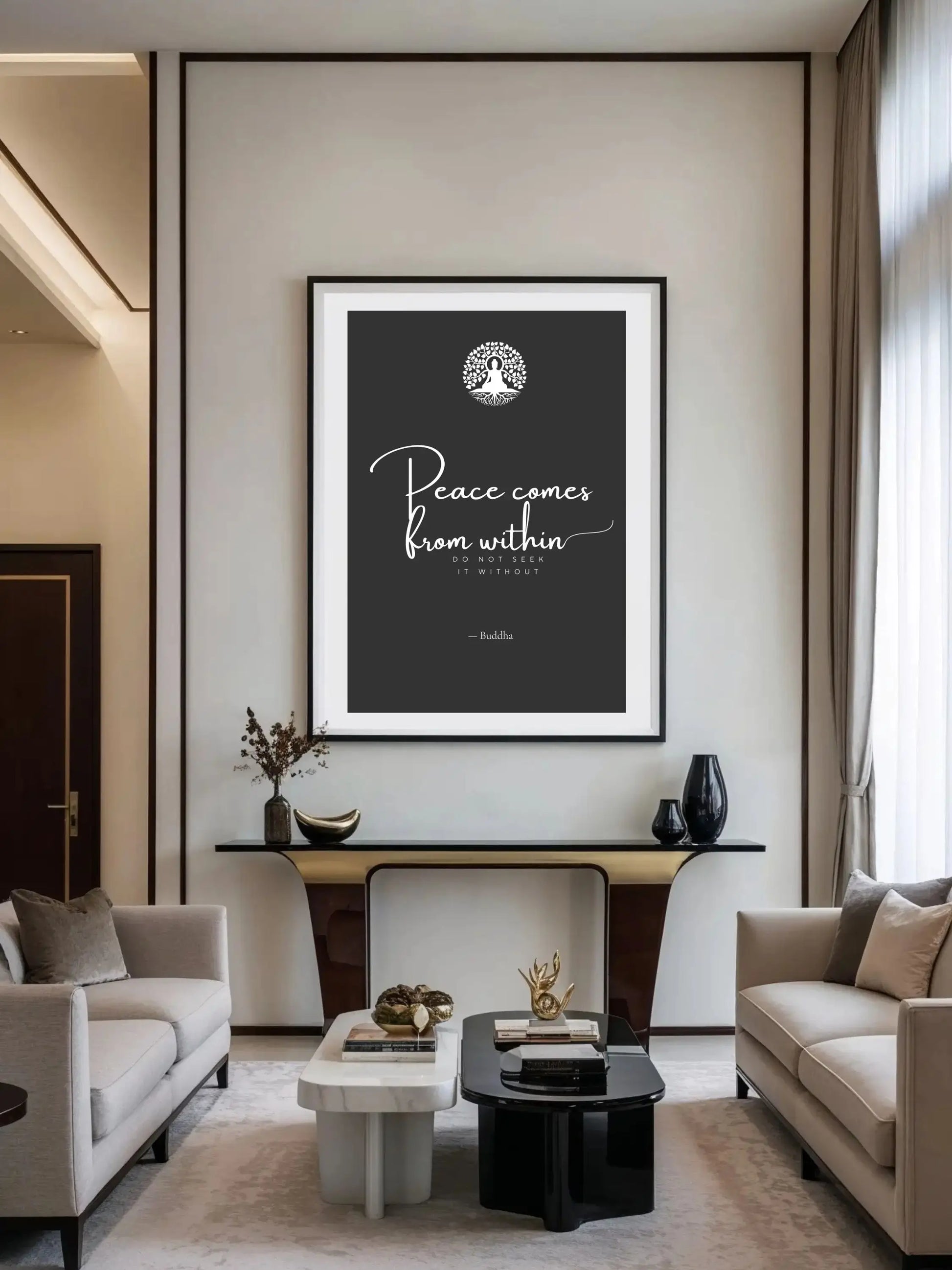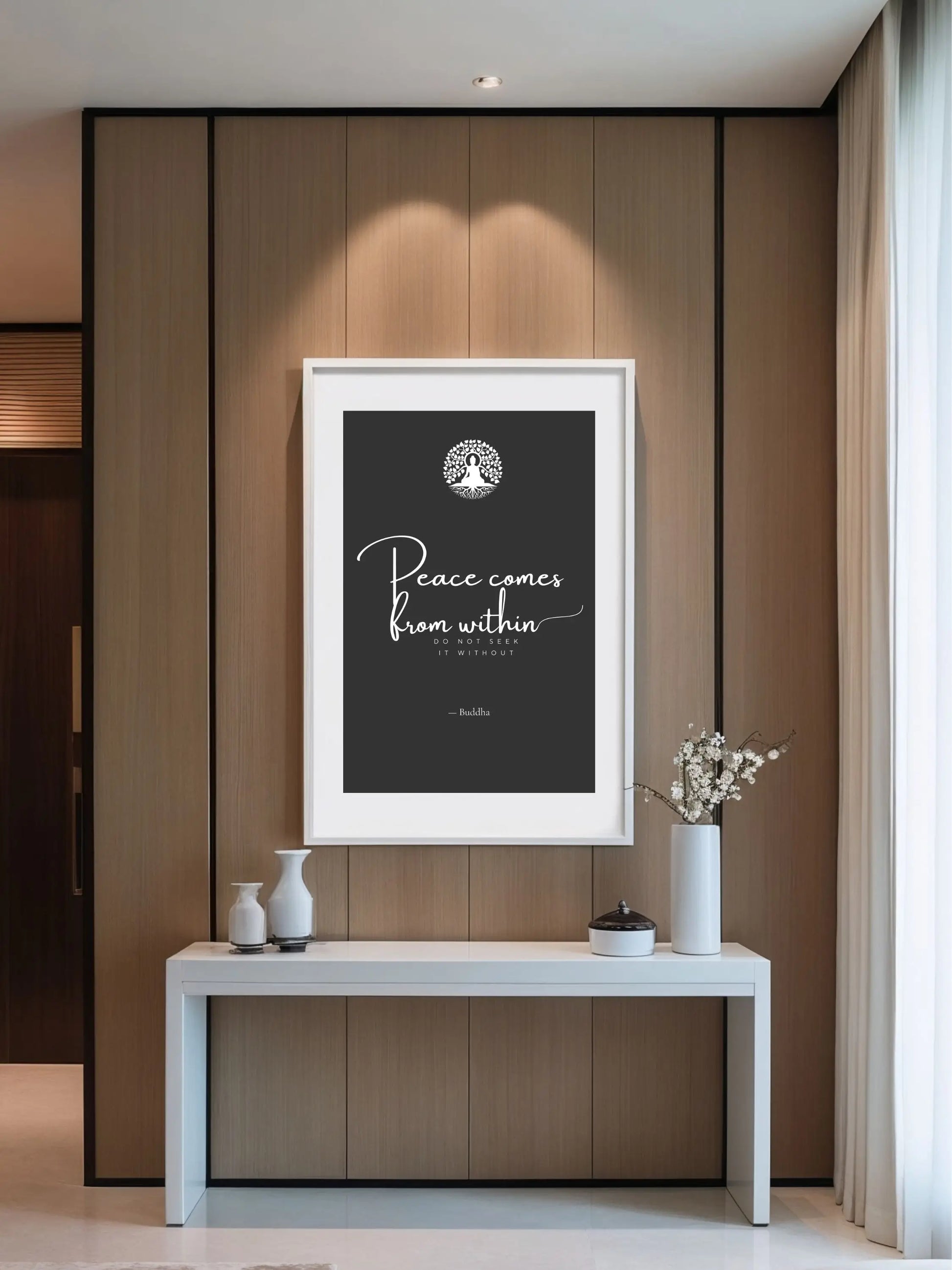 Invite a sense of peace and tranquility into your home with this luxurious Buddha quote print: “Peace comes from within. Do not seek it without.” This timeless piece of wisdom offers more than just a decorative accent—it serves as a constant reminder of the profound inner peace we all have within, waiting to be unlocked. Perfect for cultivating a serene, mindful atmosphere, this inspirational print transforms any space into a sanctuary for reflection, meditation, and personal growth.