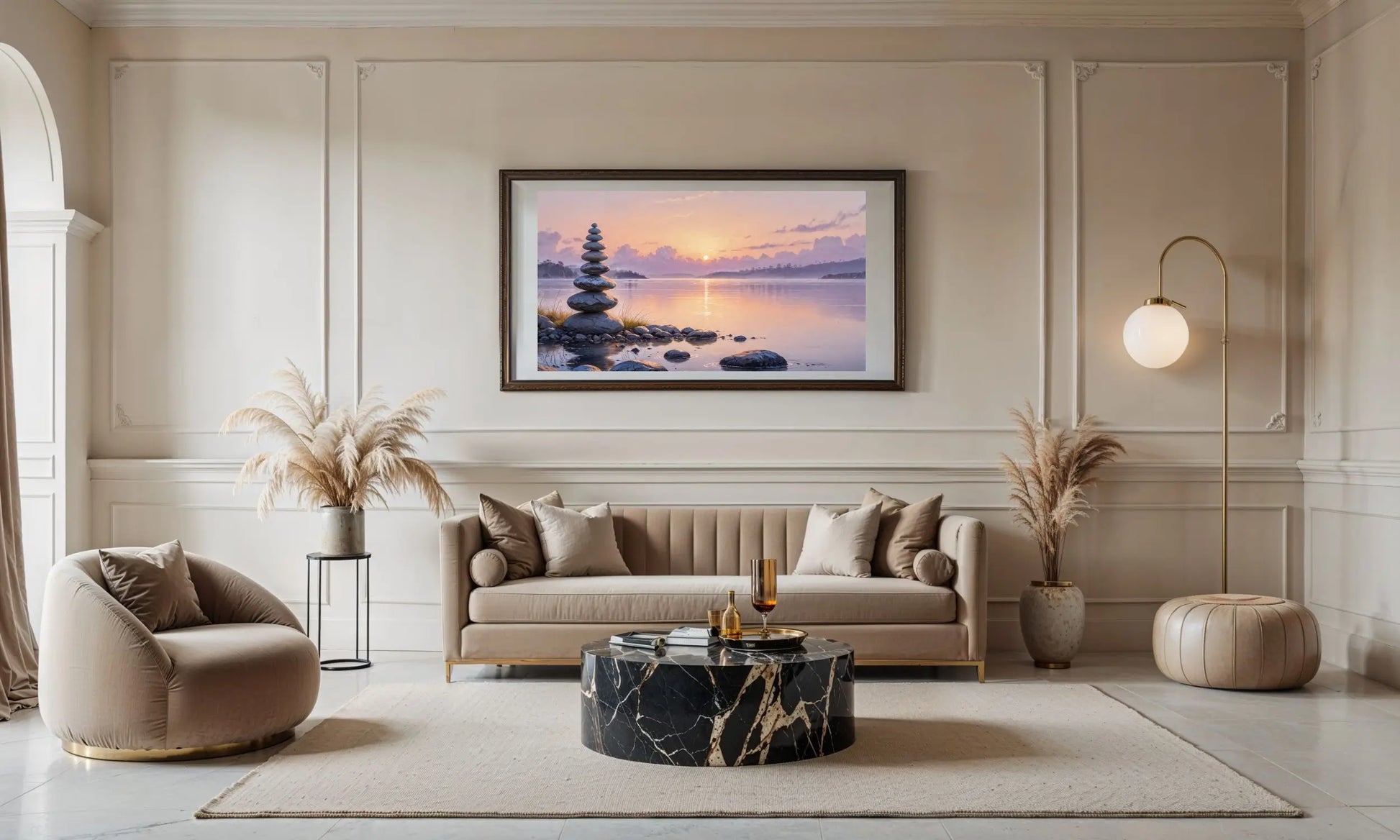 With soft, luminous tones and sculptural grounding, this stone and sky art print evokes inner peace, elemental harmony, and spacious clarity. Printed on refined Japanese matte paper, each detail radiates a quiet presence — designed to transform mindful interiors and modern sanctuaries.