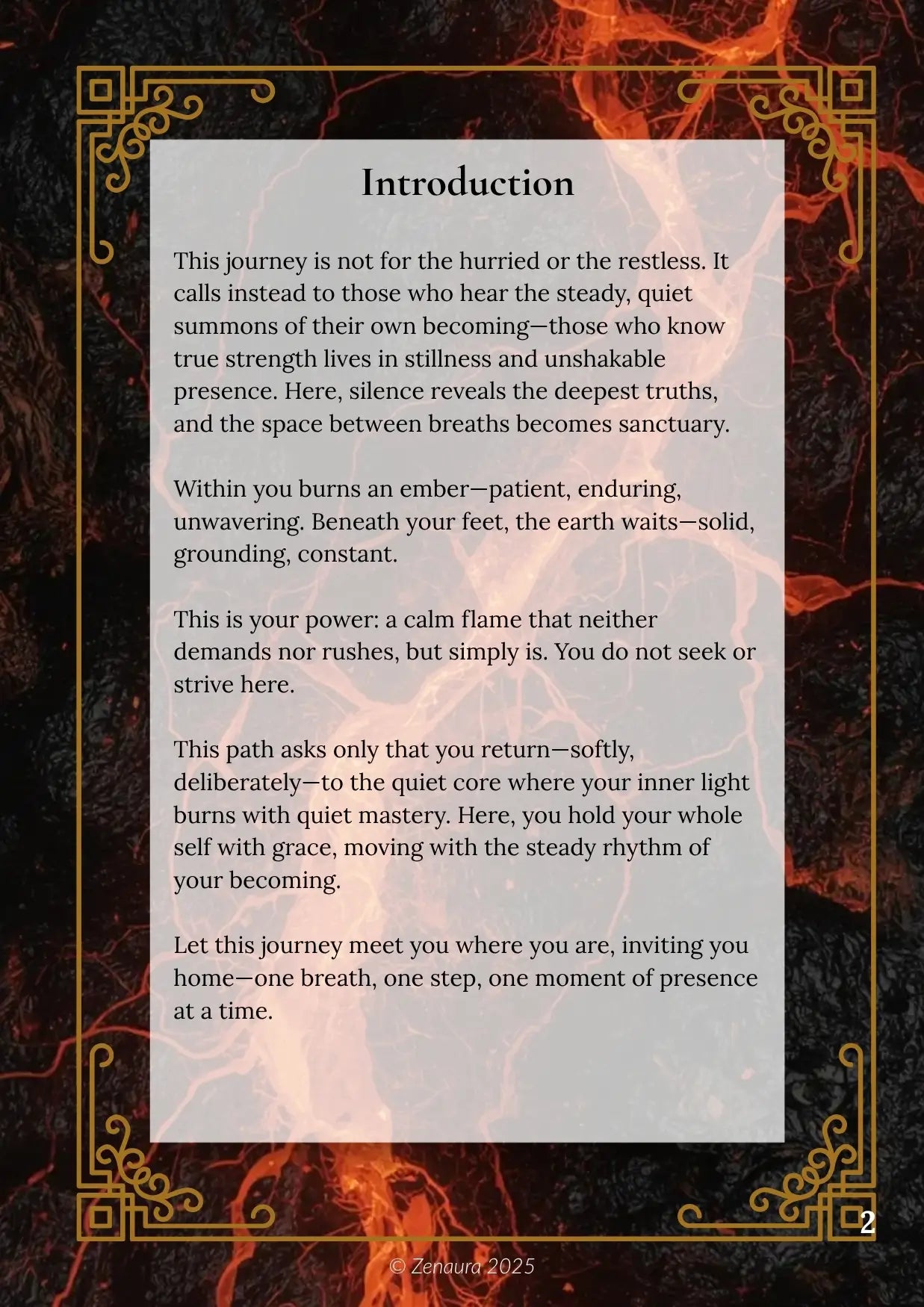 - No forced optimism or surface-level advice — only spaciousness, language that breathes, prompts that whisper, and practices that ground you back into presence and the ancient rhythms beneath it all.