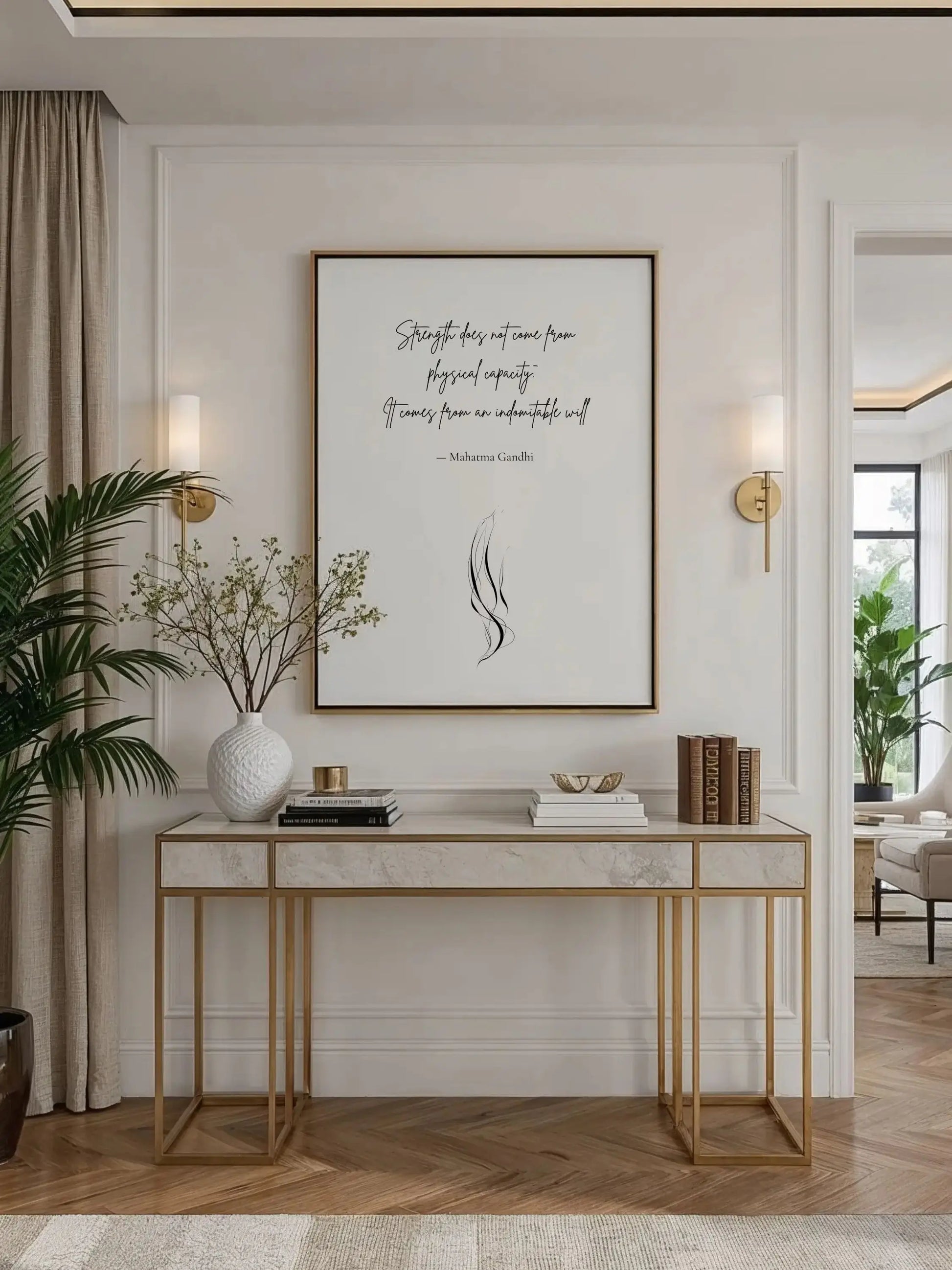 Designed for those who value depth, intention, and emotional clarity, this mindful print is the perfect addition to luxurious homes, meditation spaces, healing studios, or refined office sanctuaries. Gandhi’s profound wisdom serves as a quiet daily reminder to trust the strength within — no matter what you face.