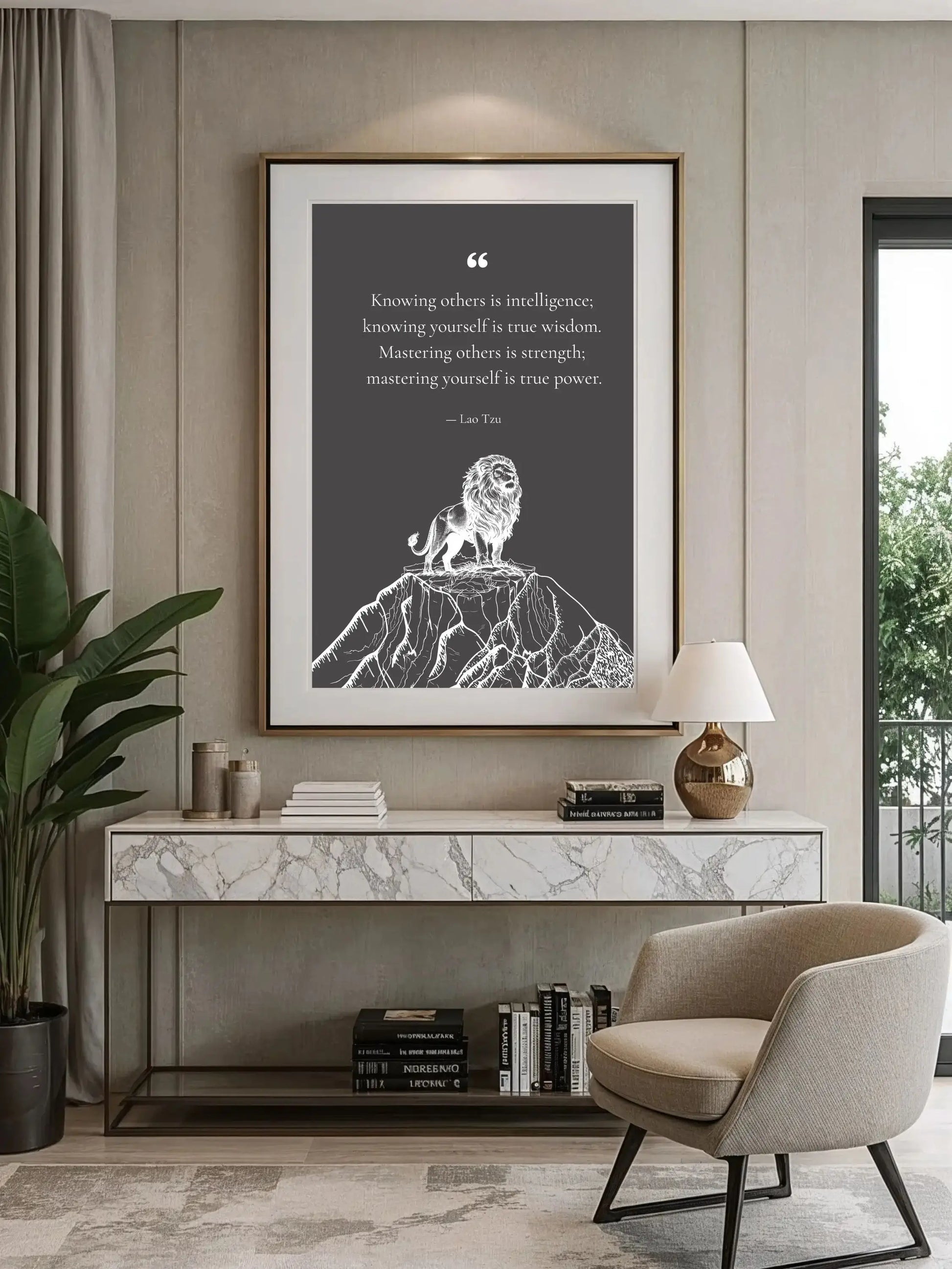 Embrace the quiet power of ancient wisdom with this luxury Lao Tzu quote print, designed to elevate your space with mindfulness and depth. The evocative words,