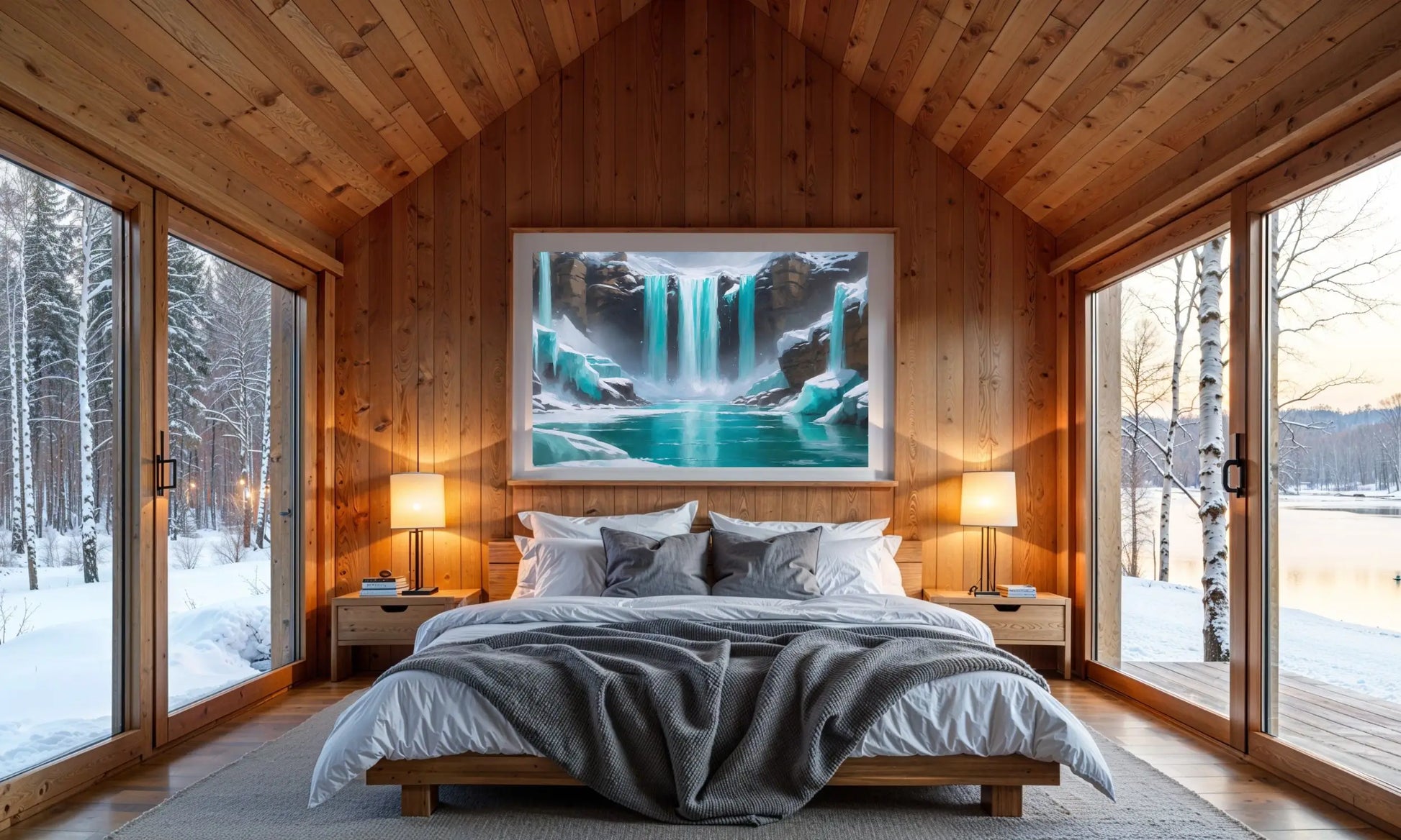 This piece goes beyond mere landscape art; it embodies a sacred pause, inviting you to exhale and experience the stillness that fills the room with presence, not absence. Every element—water, ice, and stone—coexists in a timeless, ceremonial dance of natural harmony.